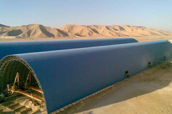 03膜结构所用膜材料由基布和涂层两部分组成.基布主要采用聚酯纤维和玻璃纤维材料;涂层材料主要聚*乙烯和聚四*乙烯。常用膜材为聚酯纤维覆聚*乙烯(PVC)和玻璃纤维覆聚聚四*乙烯(Teflon)。PVC材料的主要特点是强度低、弹性大、易老化、徐变大、自洁性差,但价钱便宜,容易加工制作,色彩丰富,抗折叠性能好。为改变其性能,可…